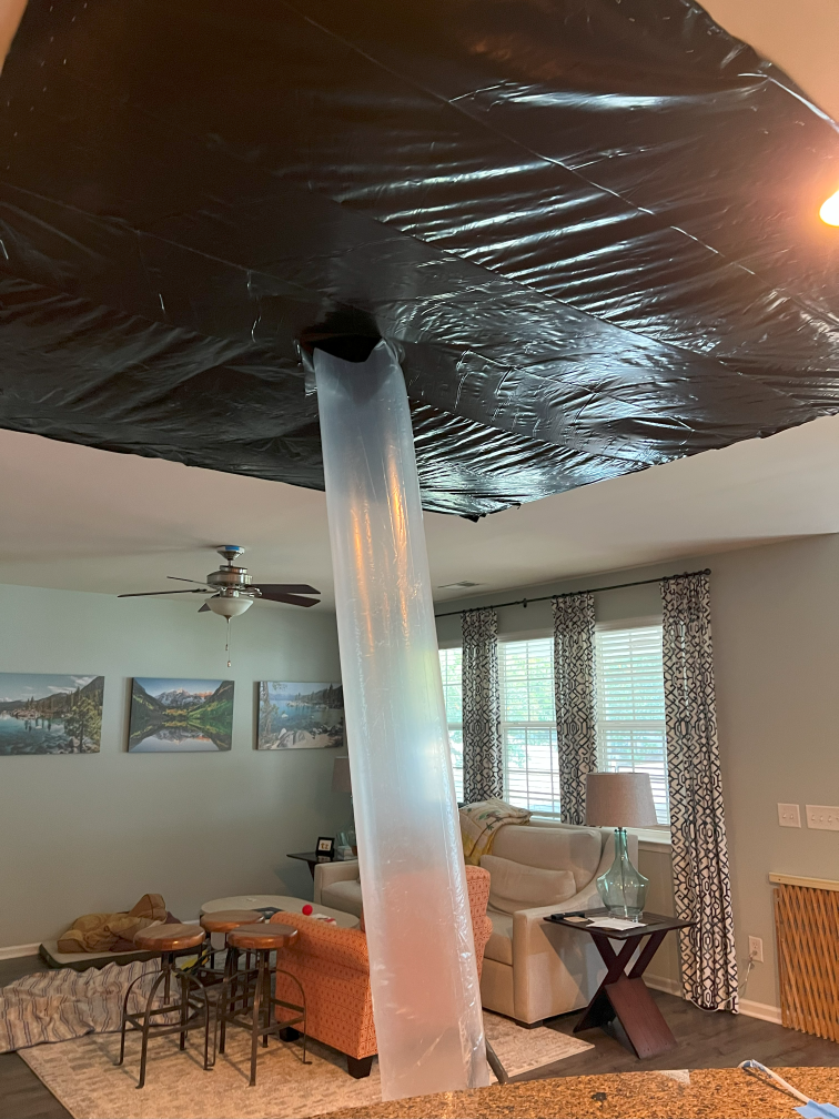 The plumber diagnosed the issue (not my fault, just how the house was built), but by then it was too late. The water damage/mold remediation company came out, tore out the ceiling, floors, and parts of the walls in the affected 4 rooms, and set up dryers and dehumidifiers that roared like jet engines for days.