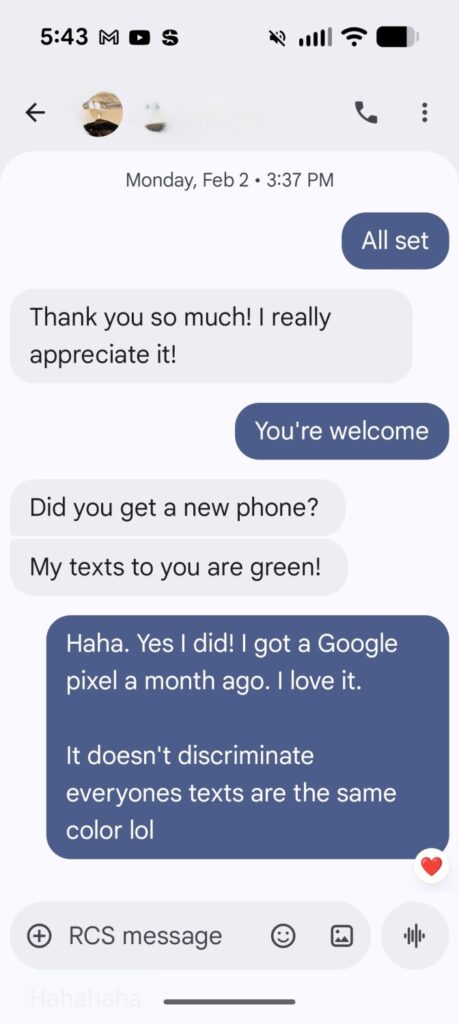 Within hours, people noticed my text bubbles had changed color. Questions poured in: